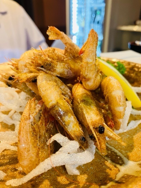 お通しは、海老アボカドと極厚椎茸フライの贅沢仕様(≧∀≦)