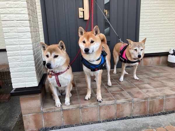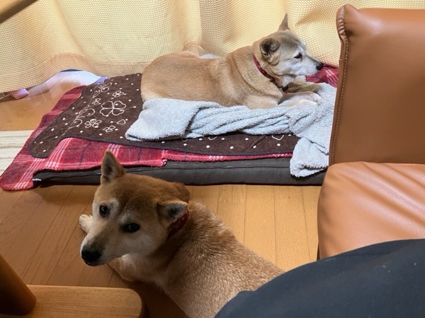 ワチャワチャする お二人さんと、足元で良い子に待ってました ヒバ子さん🐶