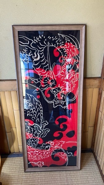お店の事を少しずつ やって行こうと、常連様に頂きました 干支手ぬぐいを額に入れまして(^^)v