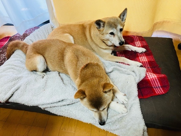 ヒバ子さん、寝てたのに となりに みるく先生が陣取りまして 困り顔💦