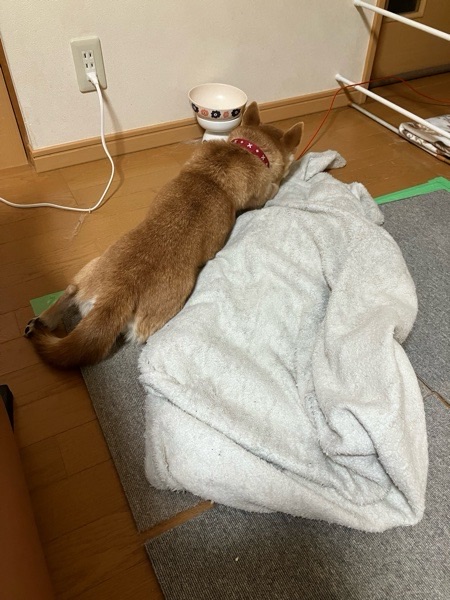 お布団無い所で 平気で寝ちゃうので、やっぱり外飼いだったのかな…と。