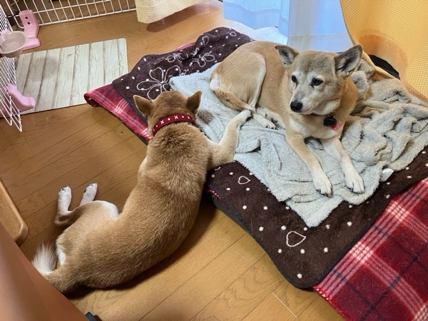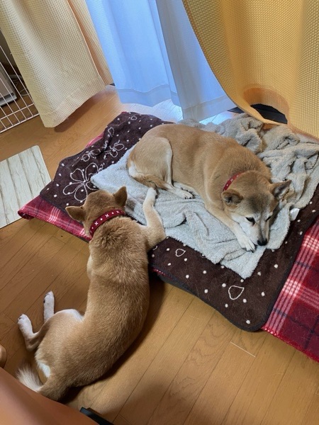 同じスペースで寝れるようになったのは、大きな成果という感じで♪( ´▽`)
