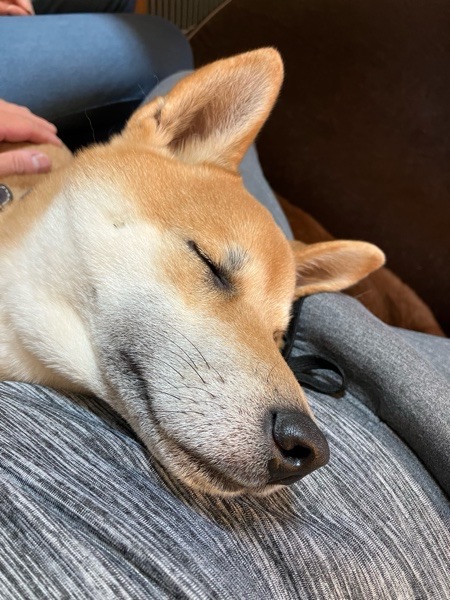 僕たゃんは、飼い主を枕にしまさて夢の中💤