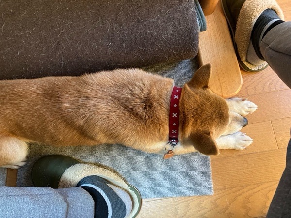 先生 足元へやってきまして、休憩しておりました😪