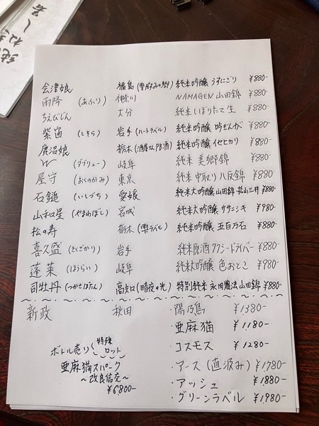 お店の準備へ入りまして、日本酒メニューを書き直し_φ( ̄ー ̄ )