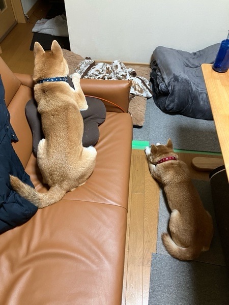 お出かけの準備に入りますと、行く気満々のコンビは、置いて行かれないように アピール😤