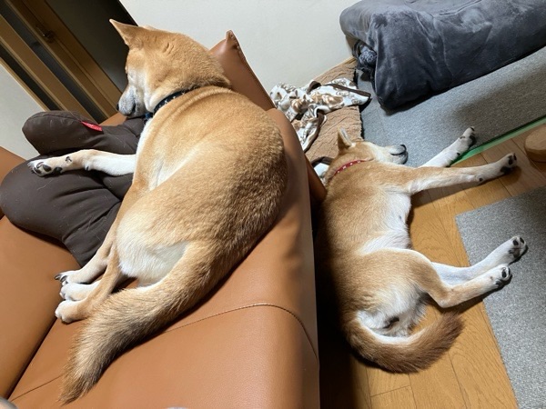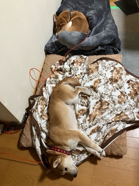 少しワチャワチャ動いたと思えば、二人くっ付いて寝てました🥰
