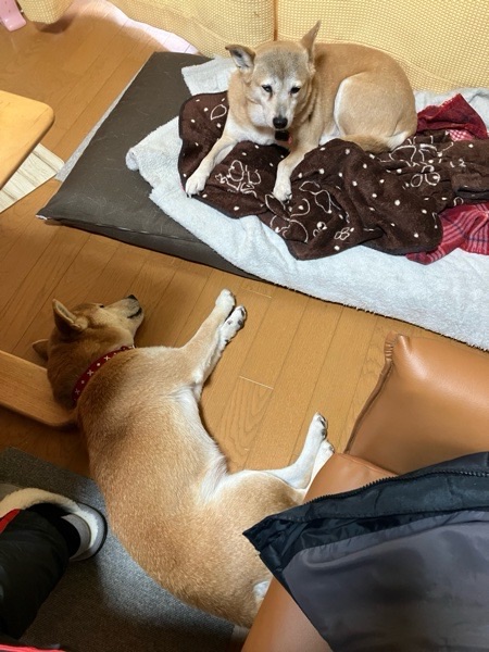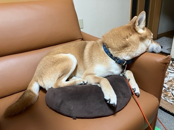 朝御飯を食べまして、ソファーの肘置きを枕に お昼寝タイム😴