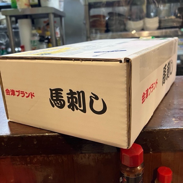 お店の準備へ入りまして、ワチャワチャ動いておりましたら 欠品しておりました 馬刺しが届きまして٩( ᐛ )و