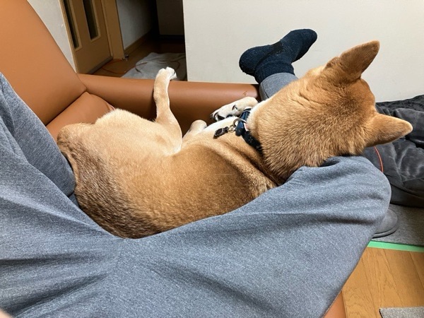 ちょっと横になってなりましたら、リリっちょが ちょうど良いねー!とジャンプしてきまして、飼い主の足を枕に(爆笑)