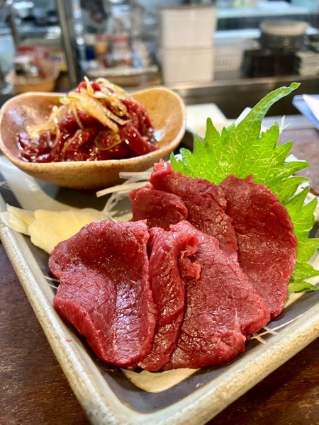 会津馬刺しと桜ユッケのハーフ&ハーフ。
