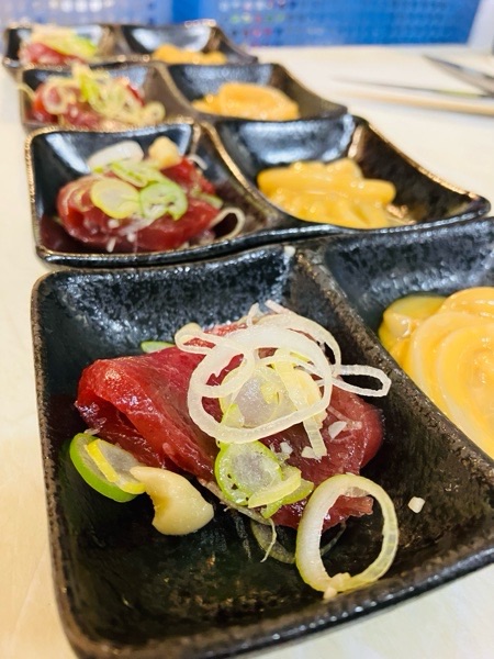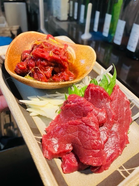 会津馬刺しと桜ユッケのハーフ&ハーフ。