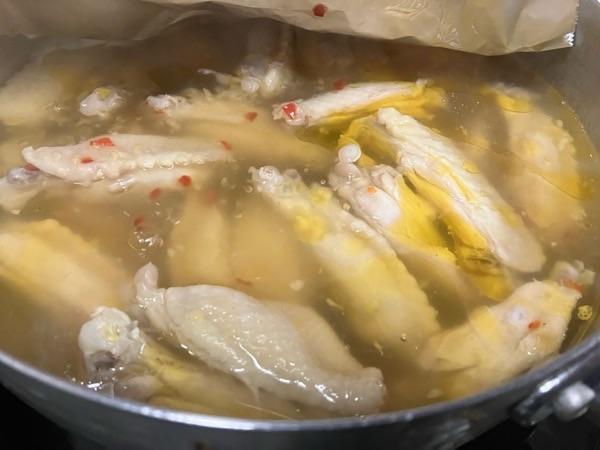 瞬ぴぃは、お店の準備へ入りまして、手羽中をコトコト煮まして🤗
