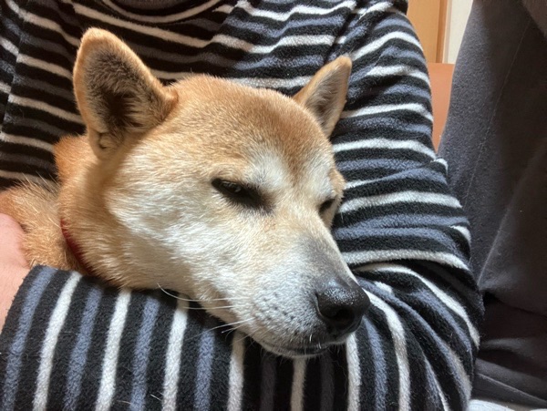 リリっちょさん、リラックス方を覚えたのか、上手にポジション取りまして、顎をチョコンと😅