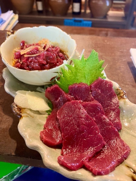会津馬刺し&桜ユッケのハーフ&ハーフ。