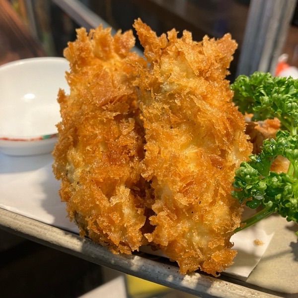 お塩で食べるカキフライ。