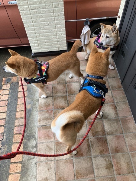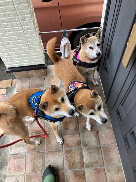 お散歩から帰って来まして、お家に入りたい組と まだまだ お外が良い みるく先生😅
