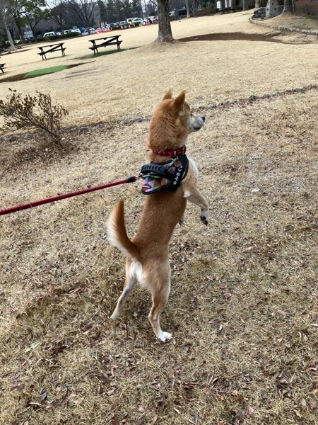 高い方が良く見えるのか、2本脚になって長い時間立ってます😅