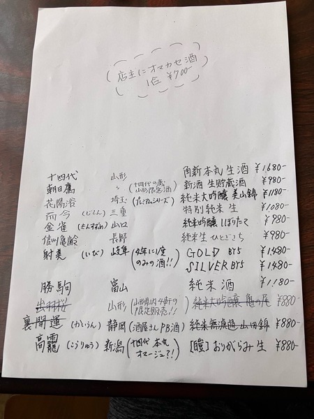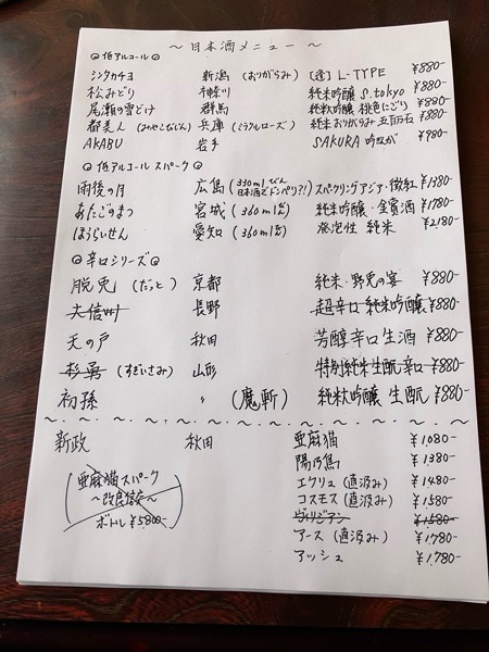 お店の準備へ入りまして、今週の日本酒メニューも書きまして_φ( ̄ー ̄ )