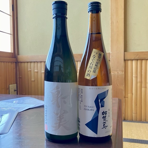 メニューに載せた初日に完売となってしまいました、能登復興応援酒【加賀鳶】を2本 再入荷させまして、その後 次の酒屋さんで射美のホワイトをGETして参りました🤗