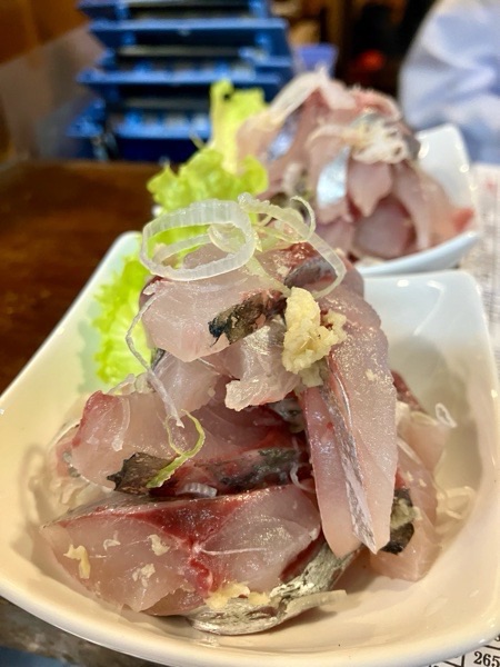 活〆釣り真鯵のタタキ。