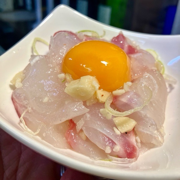 活〆天然真鯛の塩ユッケ。