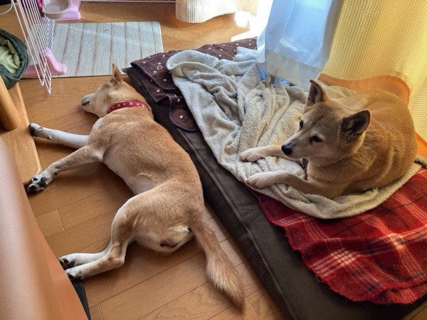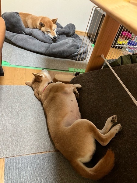 限界だったようで、ワッチャカコンビは お互いをきにしながら、寝相悪く寝ておりました_:(´ཀ`」 ∠):