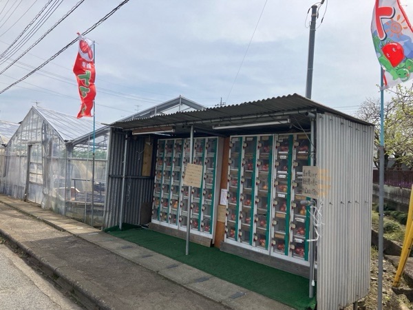 足利市のカインズホームへ向かいまして、途中に人気っぽい🍅の自販機が あるんだよ〜と奥様情報で、寄ってみました。