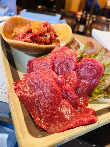 会津馬刺し&桜ユッケのハーフ&ハーフ。