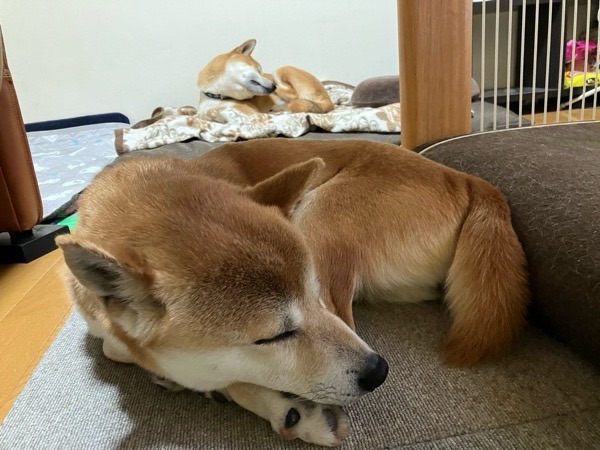 お散歩した後は、いつも通り大人くなりまして😴