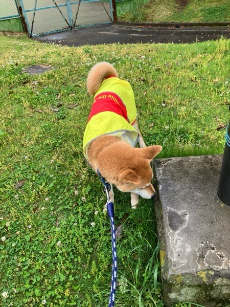 本格的な雨降りの散歩でしたので、皆んな嫌いなレインコートを装着💦