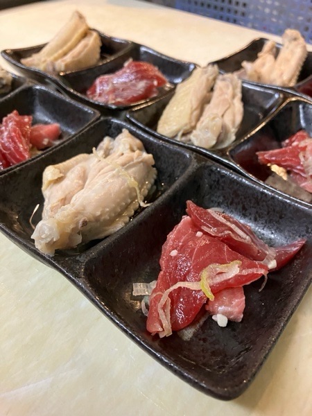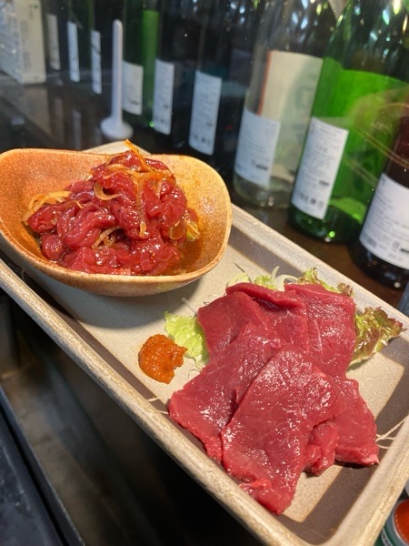 会津馬刺しと桜ユッケのハーフ&ハーフ。