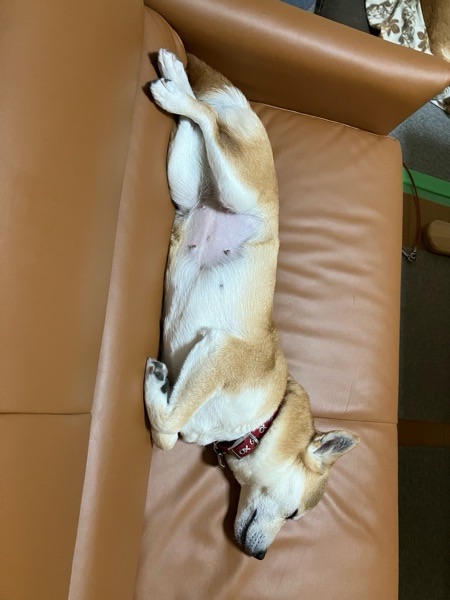 お風呂入って出て来ますと、フルリラックスの みるく先生が爆睡しておりました🤣