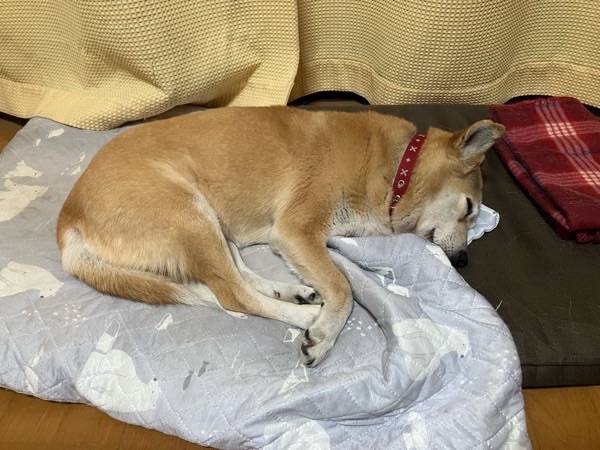 夜の時間は みるくを瞬ぴぃの布団で寝てもらい、瞬ぴぃはソファーに横になりまして みるくの動きを観察する感じで 朝まで過ごしました。