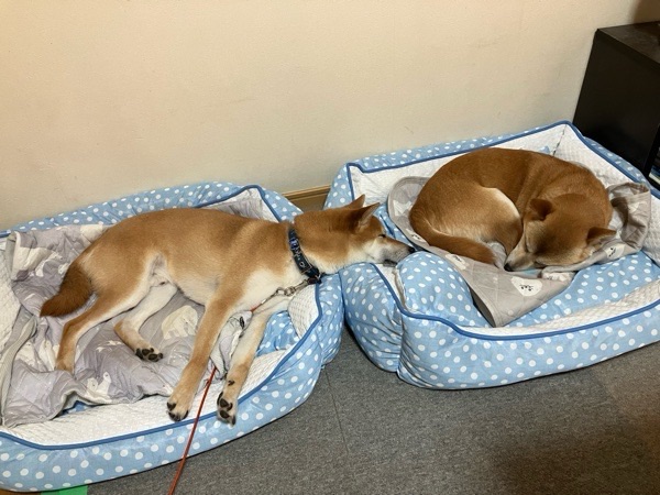 トリオ揃って、ヒンヤリ布団をグシャグシャでした😆