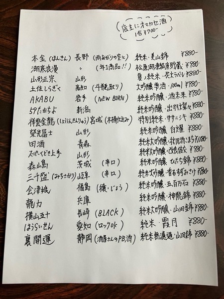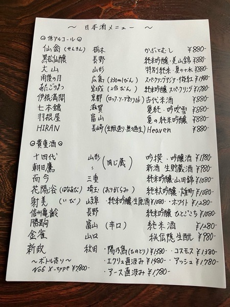 日本酒メニューも書き直しました_φ( ̄ー ̄ )