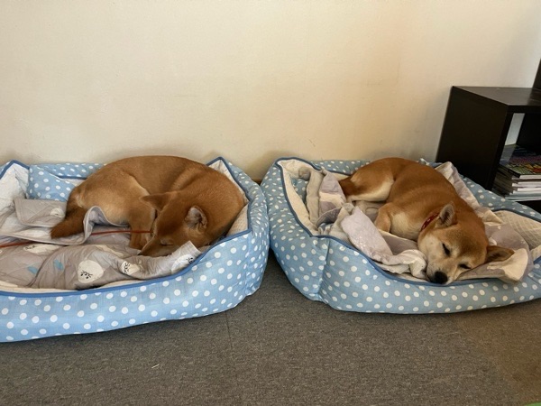 お散歩から帰って来まして、御飯を食べれば 快適空間で のんびりと🎶