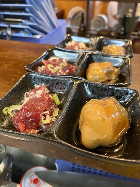 桜塩ユッケと煮牡蠣の贅沢バージョンの お通しデーでございました😆