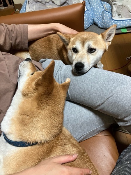 ワッチャカコンビで、奥様の膝の取り合いでございました😅