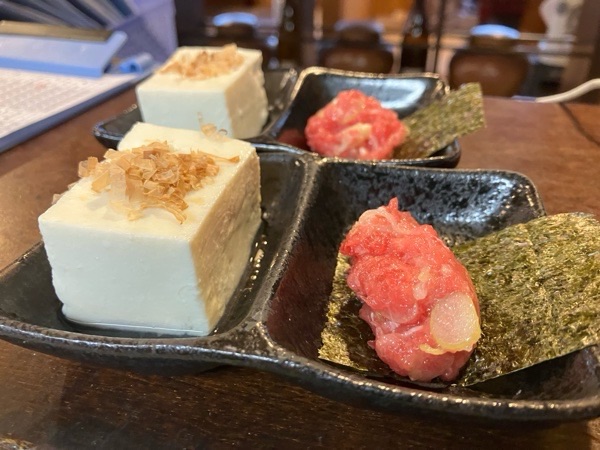 会津馬刺しと桜ユッケのハーフ&ハーフ。
