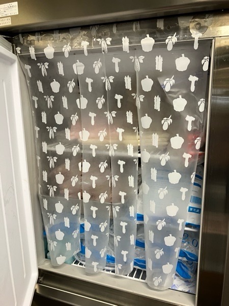 お店の準備へ入りまして、冷凍庫のカーテンを新しく(^^)v