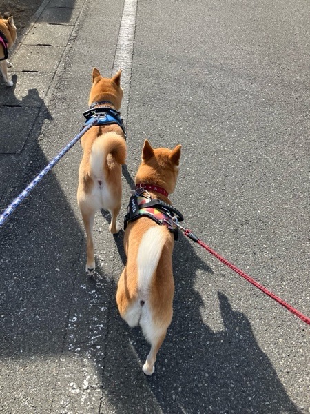 シッコに急ぐヒバ子さんと、それを追いかけるワッチャカコンビ🐕