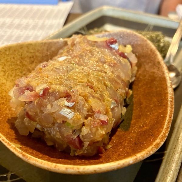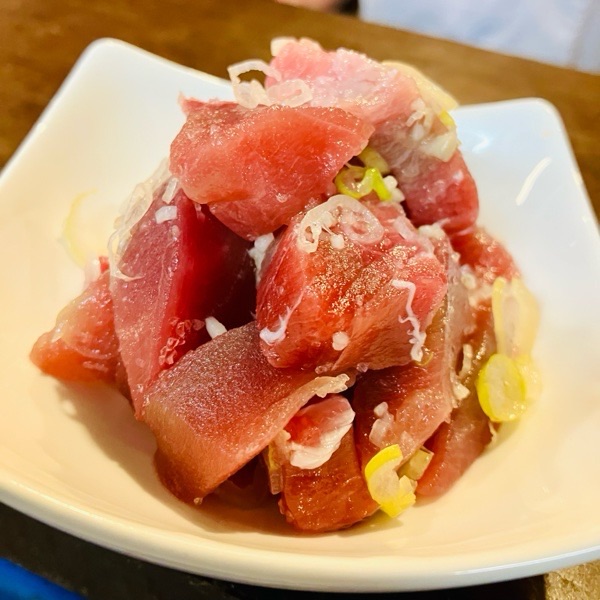 お通しからの お変わり注文、マグロの塩ユッケ。