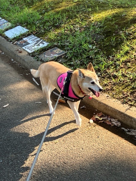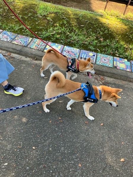 ワッチャカコンビの後ろをマイペースで進むヒバ子さんでした🐕