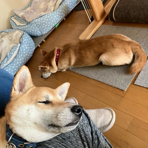 エアコン部屋で御飯を食べまして、恒例になってきました、奥様の取り合い☺️