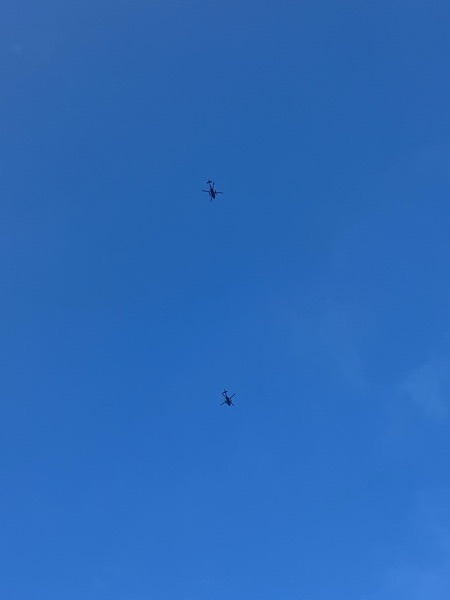 お空が賑やかな感じでしたので、見上げてみますと、2機のヘリコプター🚁