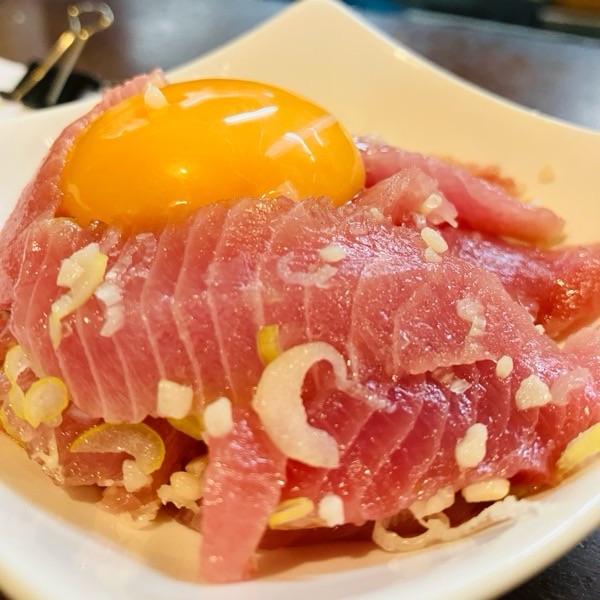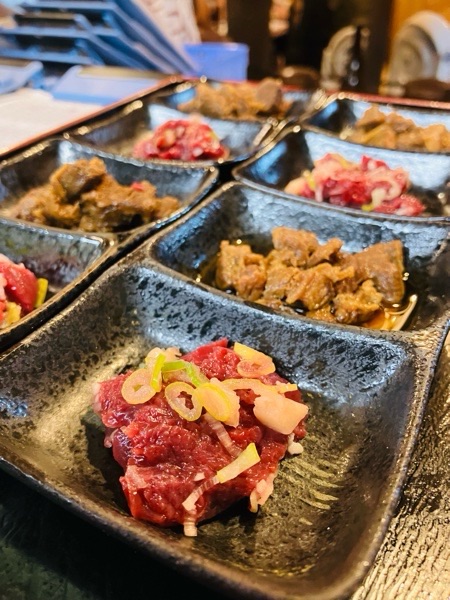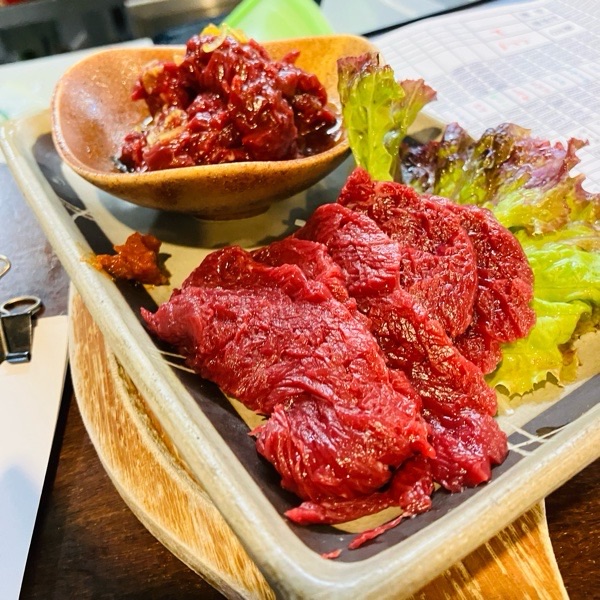 会津馬刺しと桜ユッケのハーフ&ハーフ。