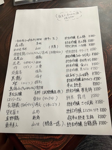 お店の準備へ入りまして、日本酒メニューも書き直し_φ( ̄ー ̄ )