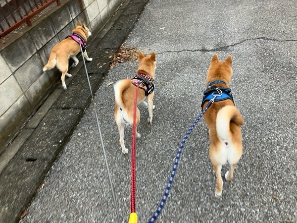 急に朝晩は涼しくなりまして、トリオ一緒に お散歩へ🐕