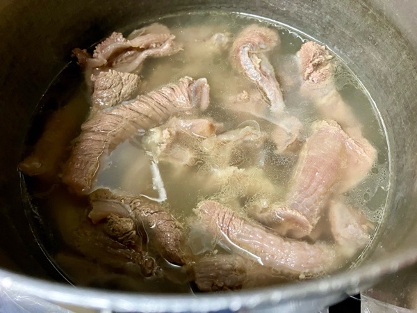 お店の準備へ入りまして、動いている時間で 馬の赤スジをコトコトと煮まして🤗